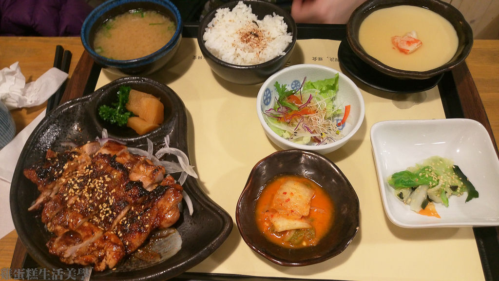 ▲照燒雞腿定食,配菜有生菜、泡菜、味噌湯、蒸蛋和白飯一碗,照燒雞腿非常香表皮有微微的焦香味肉質也很不錯。
