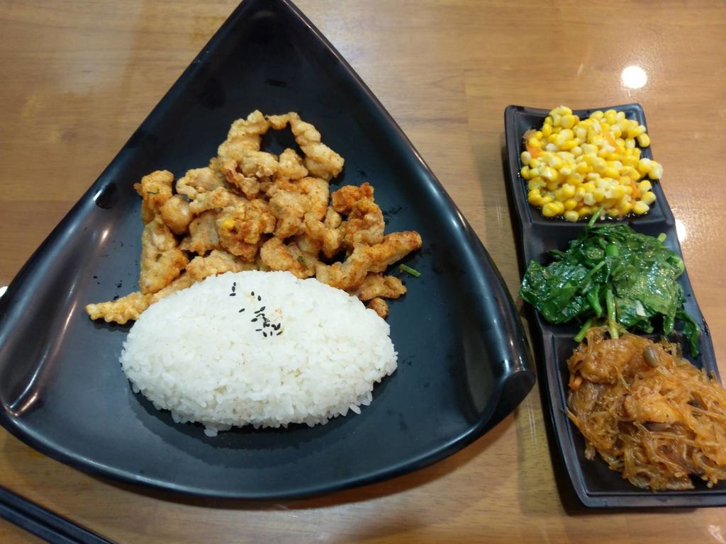 ▲厚切雞排飯 - 排餐的配菜都是現炒的,飯量也非常充足,雞排的部分肉不算多,炸得時間剛剛好不會太熟。