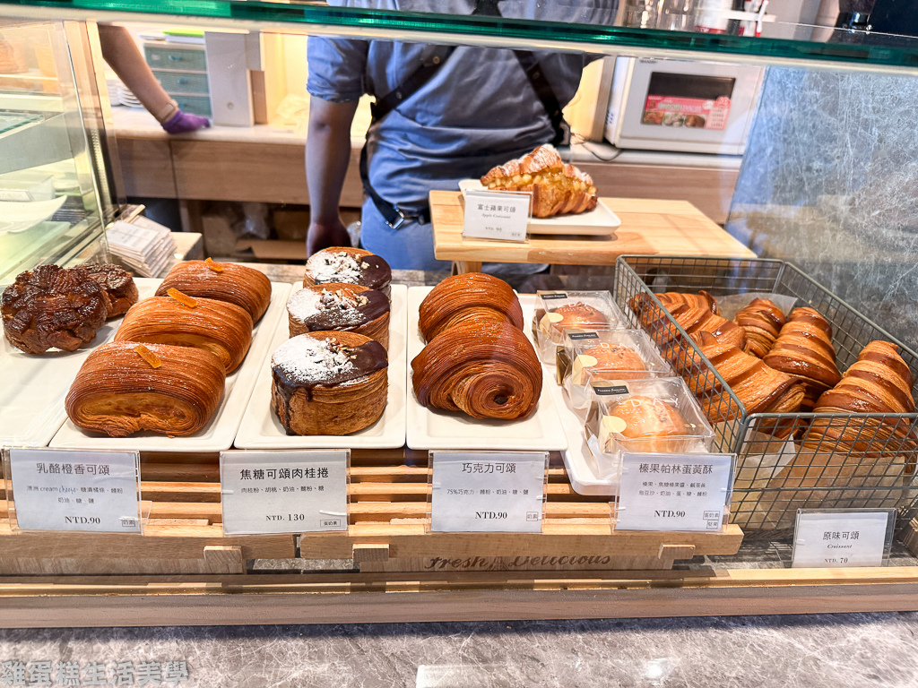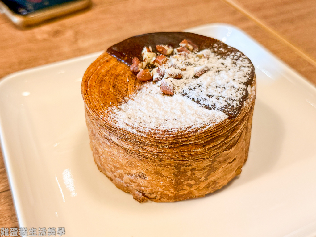 ▲焦糖可頌肉桂捲 130元:可頌質地鬆軟有層次,吃起來有濃郁的肉桂香氣,表層的糖粉和巧克力更是有畫龍點睛之妙,搭配得極好。