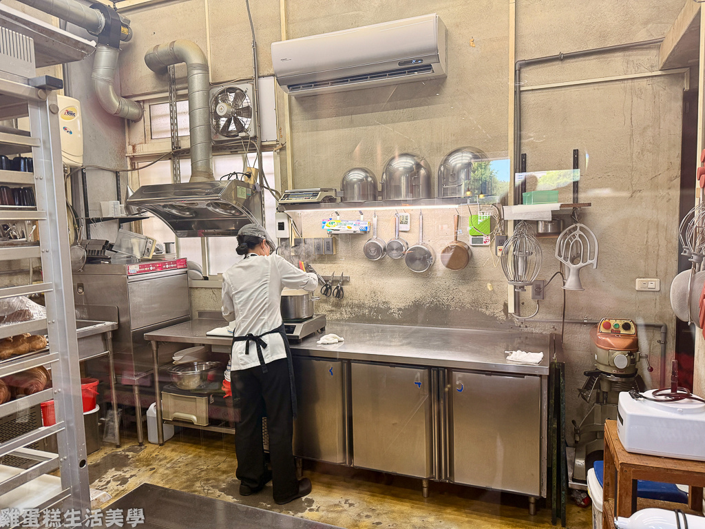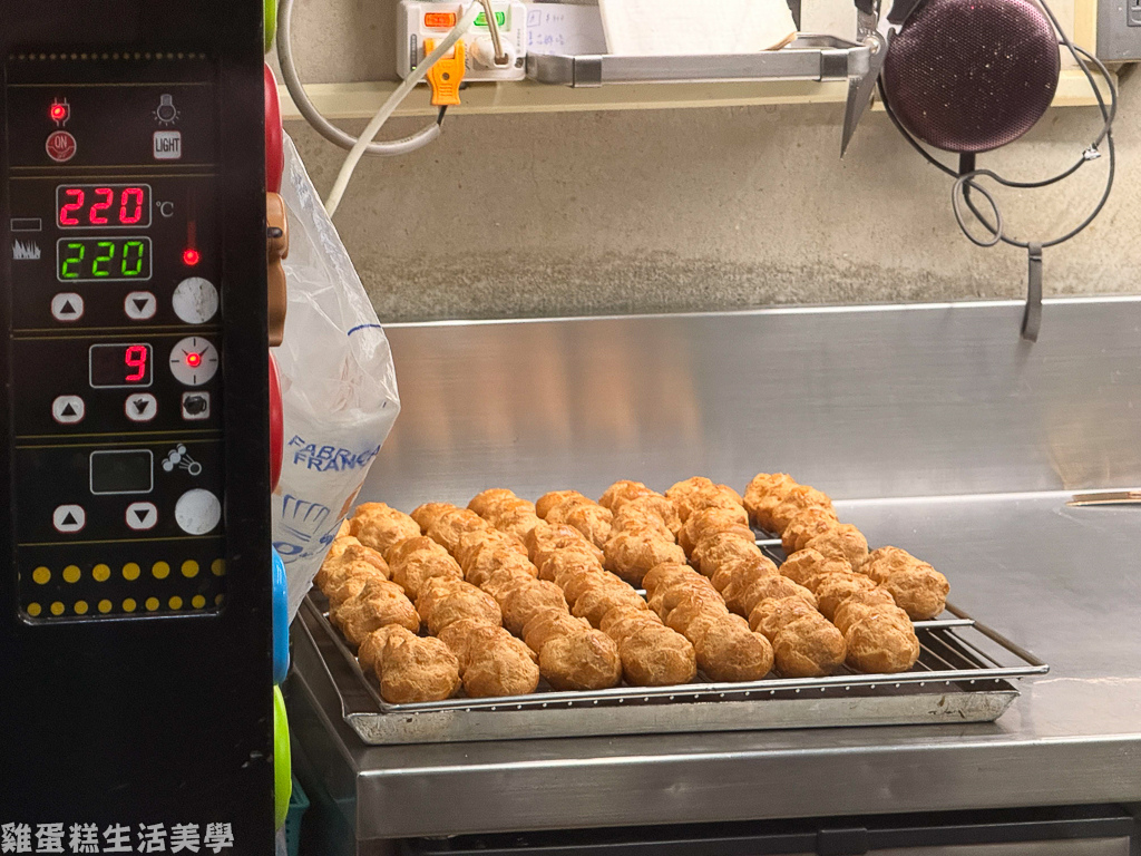 ▲後面的廚房設計成透明的,可以欣賞甜點師傅在內的工作情形,當天剛好正在製作泡芙。