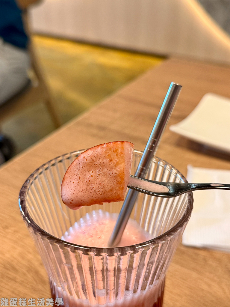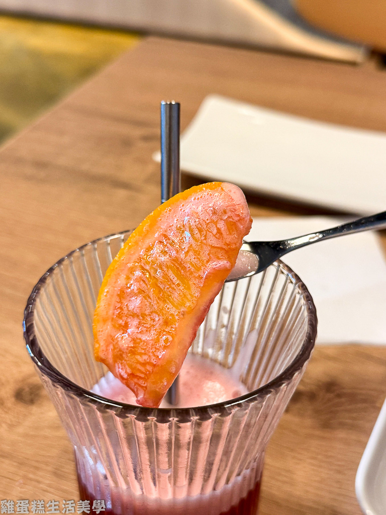 ▲水果森林冰茶 140元:內有蘋果片、洛神花、鳳梨片、芒果片、木瓜片、玫瑰果、苦橙皮、黑莓葉、草莓片、葡萄乾等滿滿的水果和果乾,喝起來果香味十足,還能撈出整塊的蘋果和柳丁,很真材實料。
