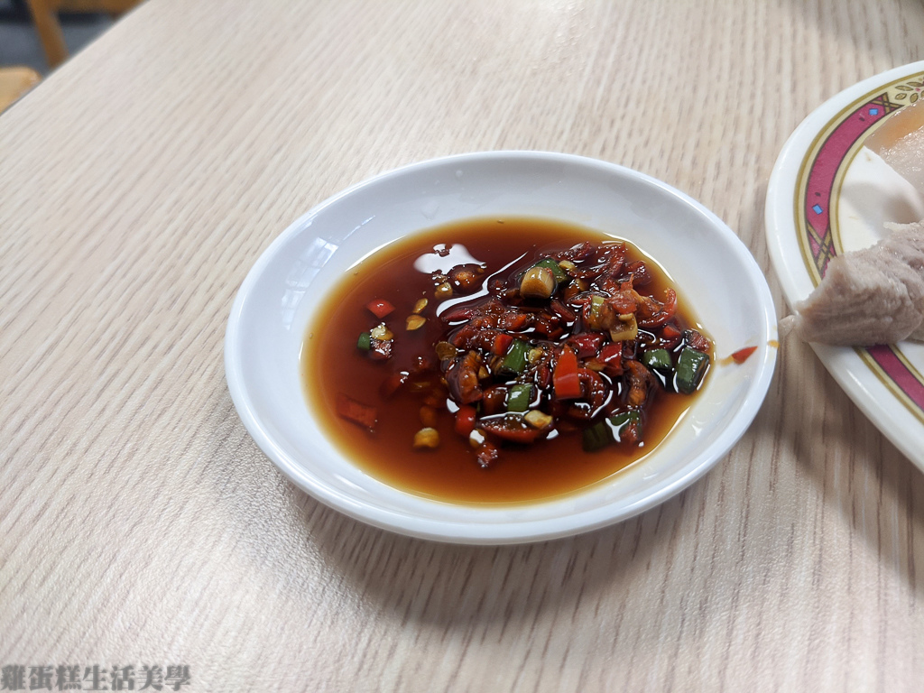▲吃三層肉搭配的醬料,沾一點讓味道更有層次。