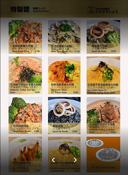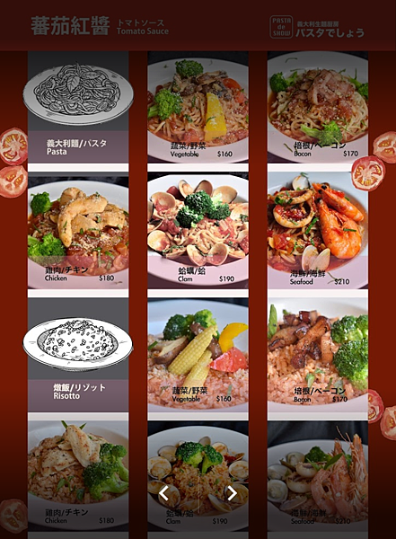 ▲菜單:特製醬義大利麵和燉飯。