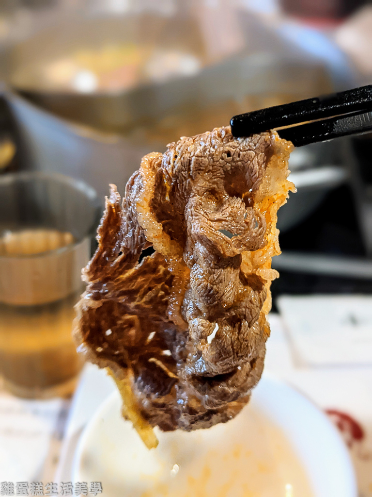 ▲這次點了牛雞豬不同種肉,以這個價位來說肉質算不錯,油花分布得很漂亮整體算軟嫩。