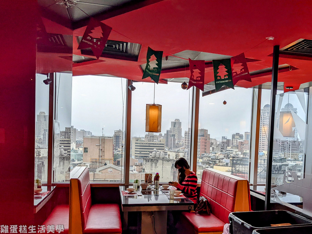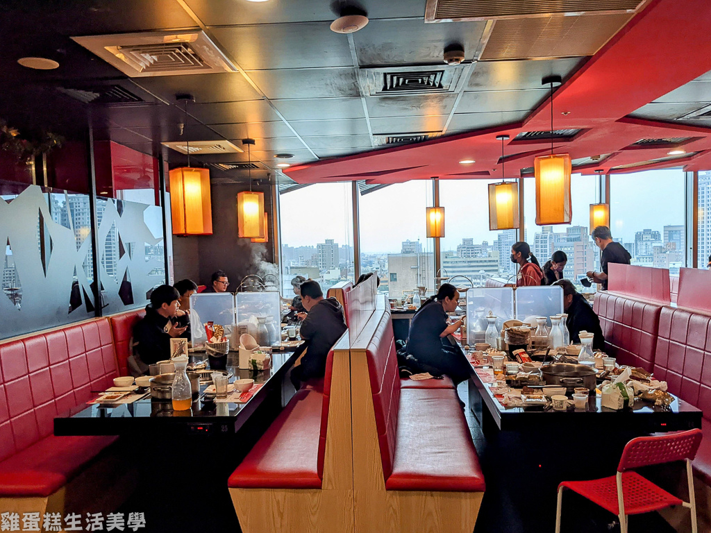 ▲用餐座位區為長型沙發,以紅色系呼應麻辣火鍋的"辣",靠窗的位置可以欣賞窗外的城市風景。