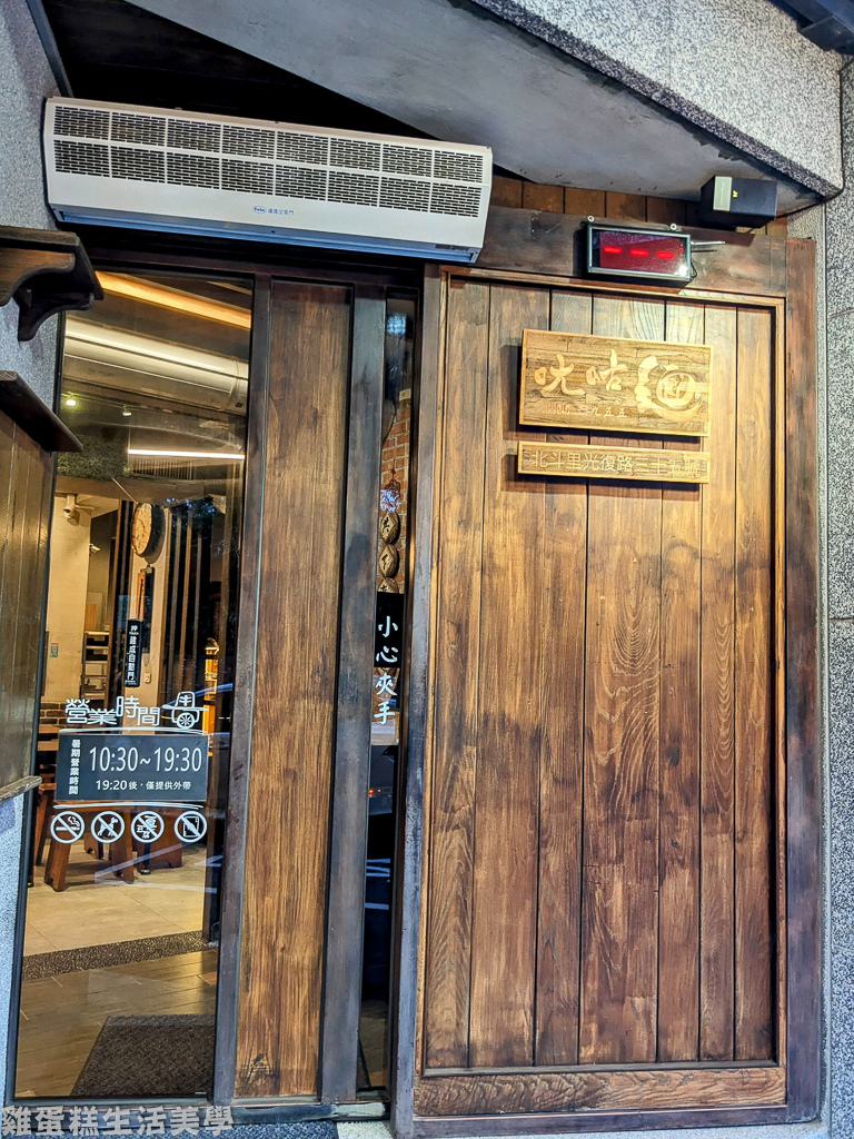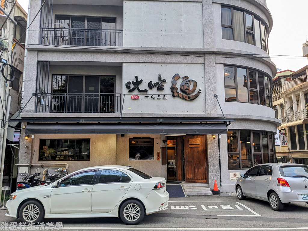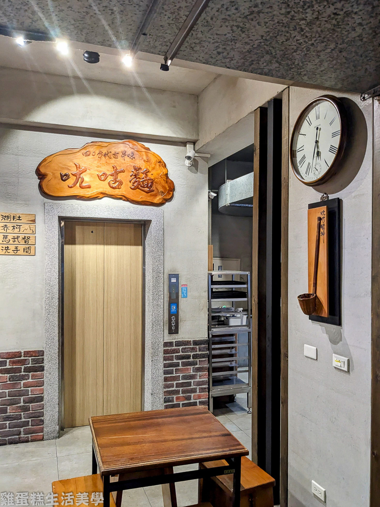 ▲ㄤ咕面位在這間轉角店面,外觀使用灰色清水模,招牌字體很有設計感,大門上方有號碼牌,客滿時需領號碼牌候位。