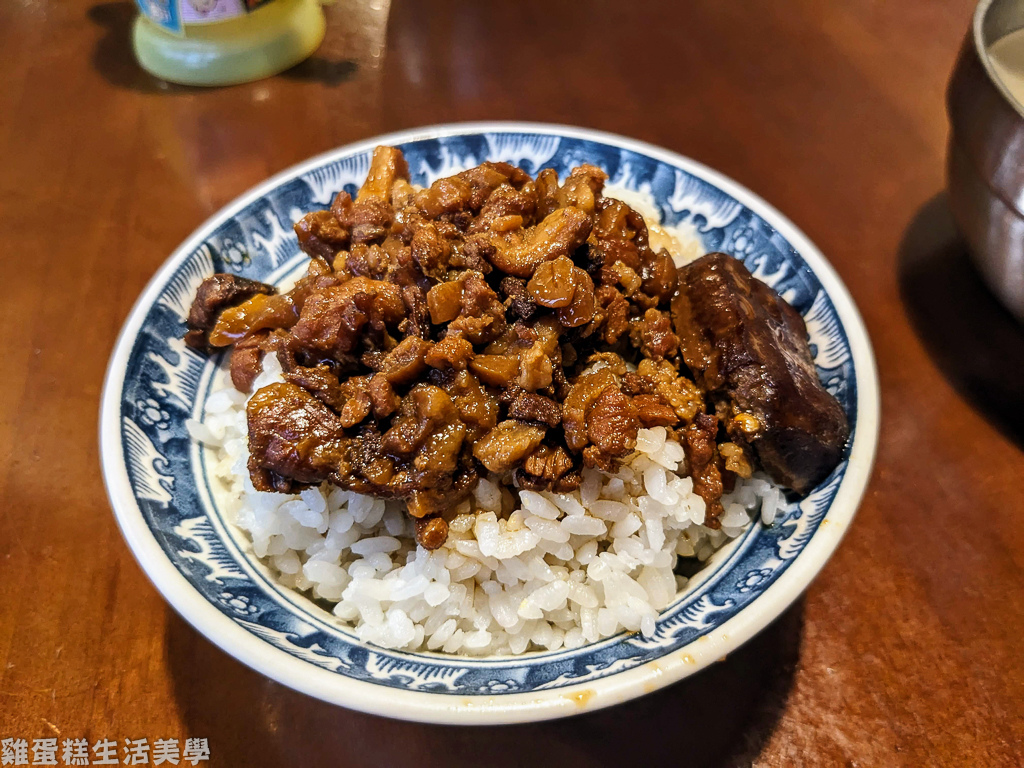 ▲滷肉飯 48元:他們的魯肉飯使用的是全瘦肉滷肉,配上一塊滷豆干,滷肉和醬汁非常入味不會死鹹,白飯粒粒分明有Q度,醬汁和滷肉、白飯三者的比例拿捏得剛剛好,老實說贏過許多新竹知名的滷肉飯店了!