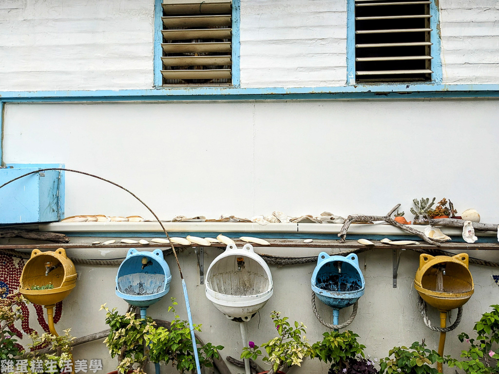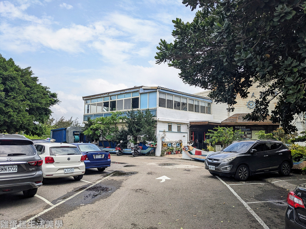 ▲餐廳外觀為白色鐵皮屋,看起來很有歷史感,門口左右兩旁擺放了龍舟供遊客拍照。