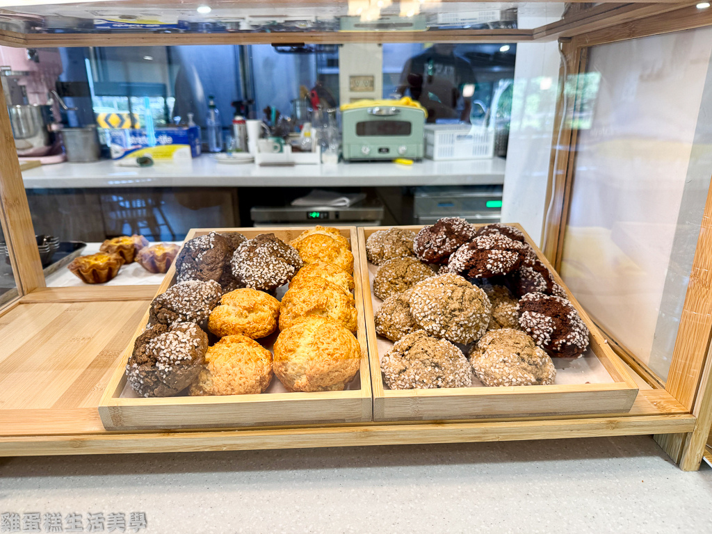 ▲櫃台上有剛出爐的麵包和蛋塔,種類沒有二十四分之一多元,麵包畢竟不是這裡的強項。