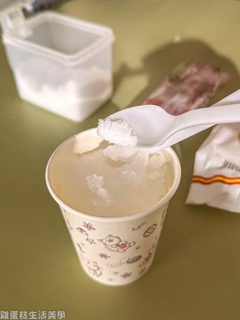 ▲清冰沙 10元:冰沙一杯10元裝得滿滿的,吃起來有淡淡的香蕉香氣,桌上有一盒鹽巴,加在冰裡面多了點甜甜鹹鹹的味道,觀察到在場點清冰的人每個都是這樣加。
