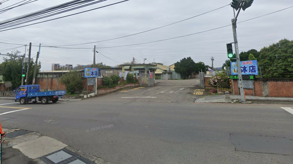 ▲中油資源莊冰店位在竹東東峰路上,廠區門口有明顯的藍色冰店招牌,勇敢開進去就對了!(圖片截自google街景)